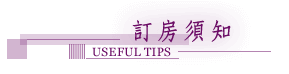 | ● | 如使用線上訂房,請務必來電確認是否訂房成功,不便之處,敬請見諒。 |
